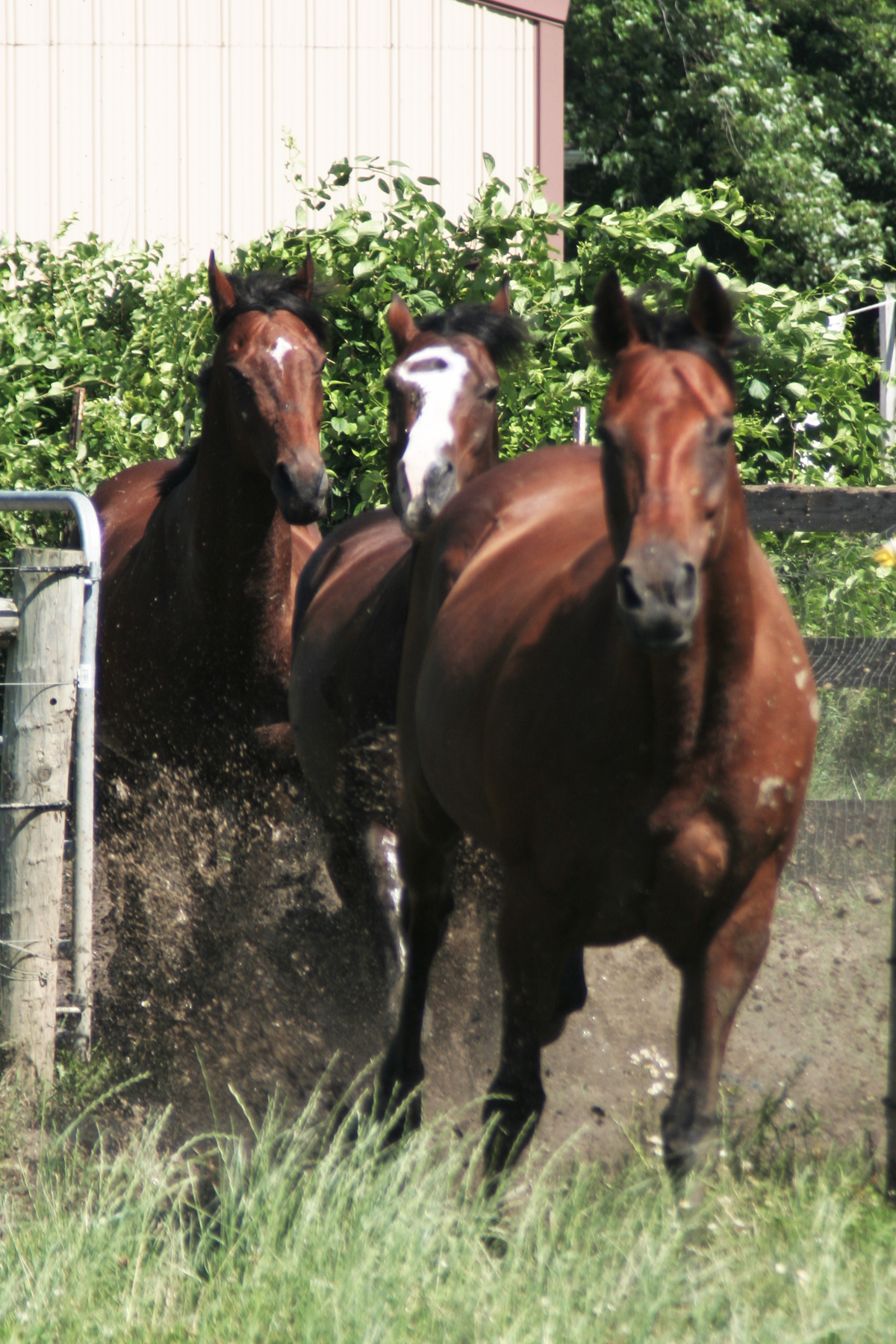 Symphony, always the friend in times of sheer desperation, chose to take the lead, turning the cacophony of hoof beats into a settled rhythm of horses galloping. Straight. For. The. Barn. “I’m going to die!” Senorita’s stride stretched out as she followed the other horses towards the barn. Throwing a few small bucks in for the fun of it, she was headed directly for the barn. There was no passing go, no collection of money, and no chance to escape near and certain death. I clenched my legs tighter and grabbed another handful of mane as I saw the gate and the right-angle turn into the second pasture approaching at a million miles an hour. “Oh no. Oh no. Oh no. She’s not going to make the turn.” Slipping, sliding, and nearly crashing into the gate, we made it around the corner. If my brother ever thought drifting around corners in a car was cool, Senorita had just established a whole new “cool.” At one point in the corner I could nearly touch the ground as we slid, almost fell, recovered footing, and took off again at a gallop. Making up for lost time. Here came the second gate. Into the paddock we slid, a little cleaner than the first time, throwing up mud with every footfall.