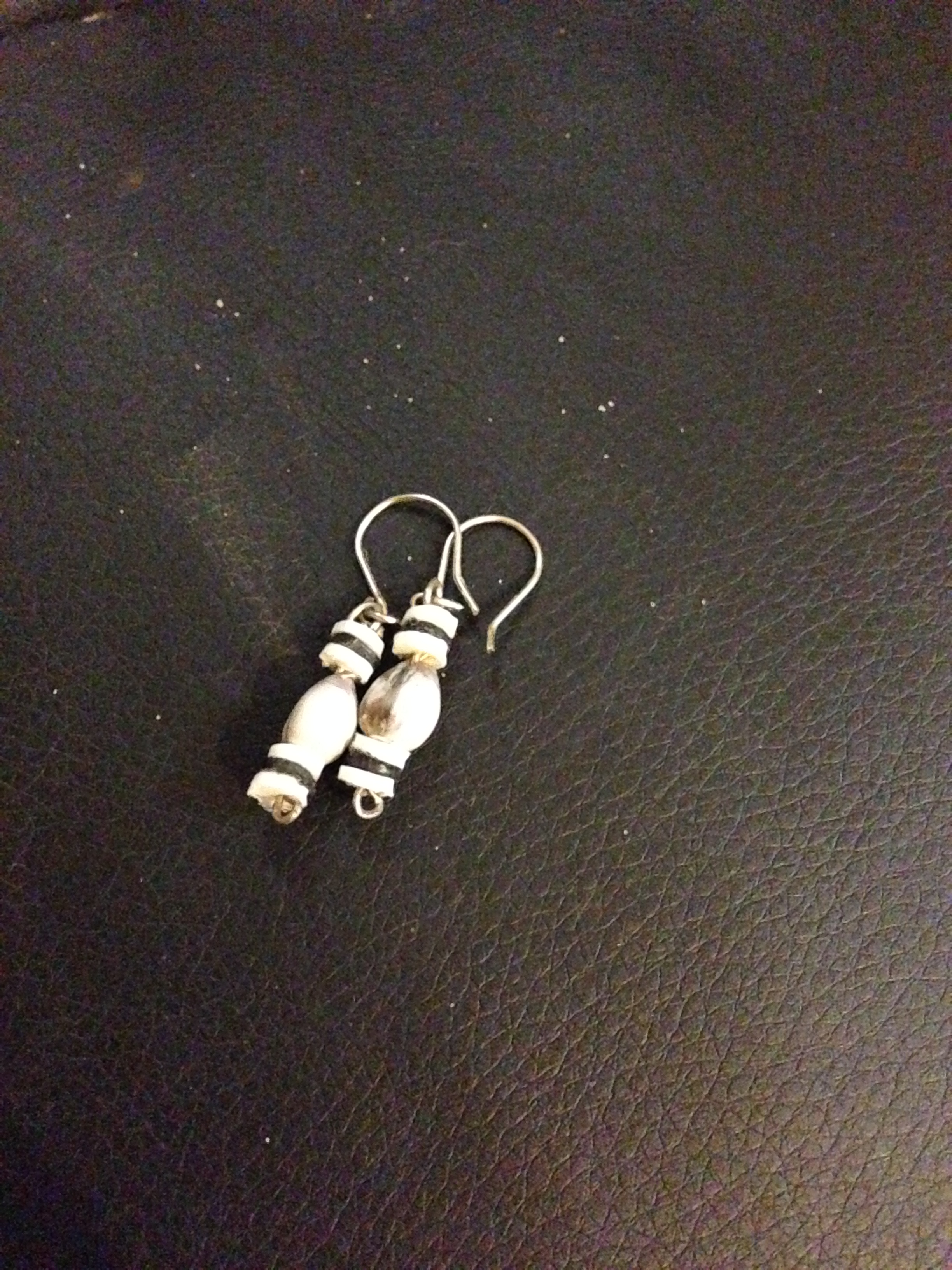 Another tiny (for me!) pair of earrings, these come from Papua New Guinea. I bought several pairs of earrings while I was there in 2010 for Interface, but the grey, black, and white color scheme on this pair, makes them one of my favorite pairs of small earrings. Classy and unique.