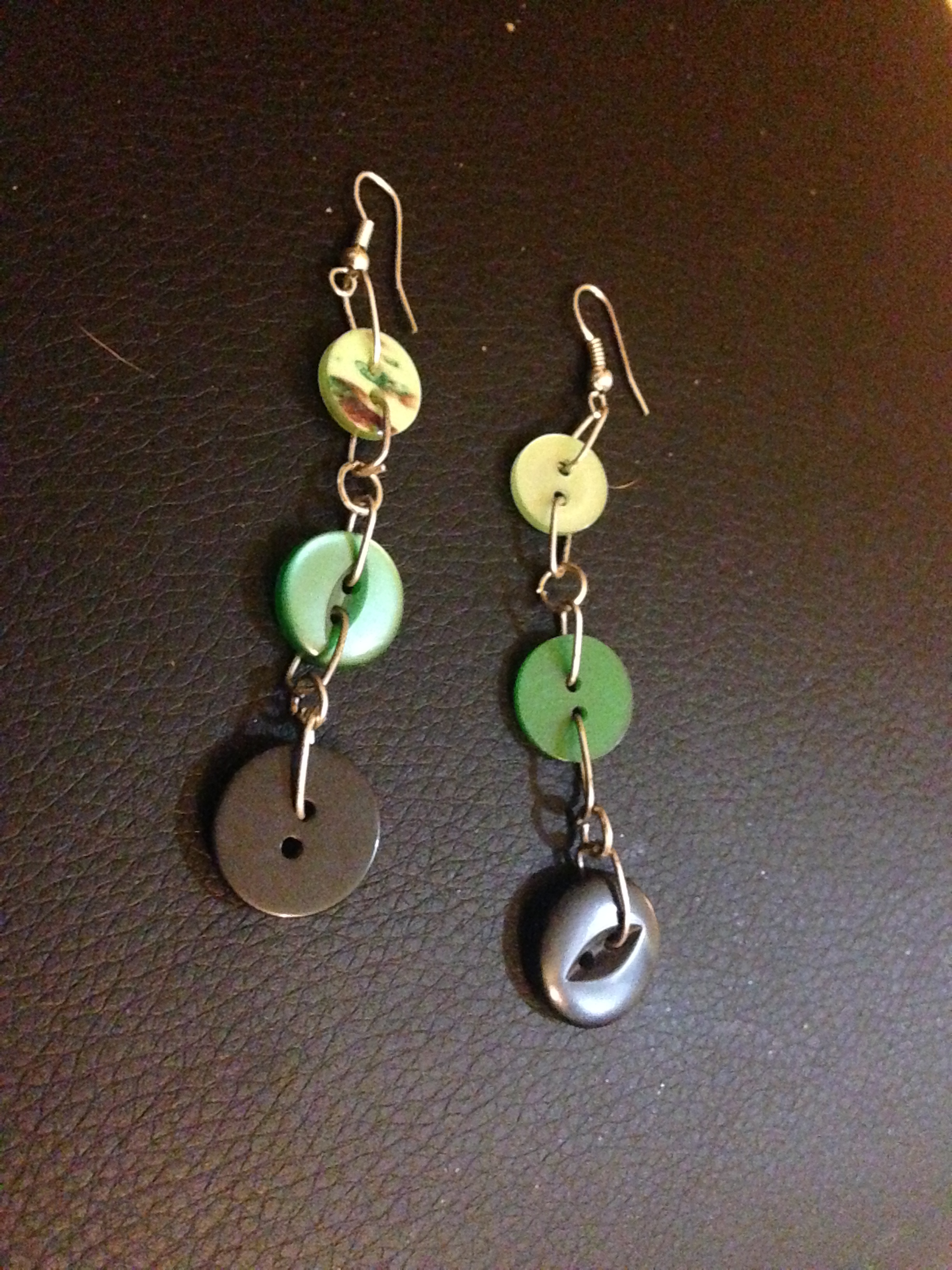 I recently purchased these earrings at the Dar es Salaam Artisan’s Market. They were handmade by Tanzanians working with Nuru Center, a NGO/ministry employing individuals with disabilities. The artisans working at Nuru Center create beautiful jewelry, banana-leaf cards, and other artwork. I own several items that they have designed, including a banana-leaf plaque of Africa and multiple pairs of earrings!
