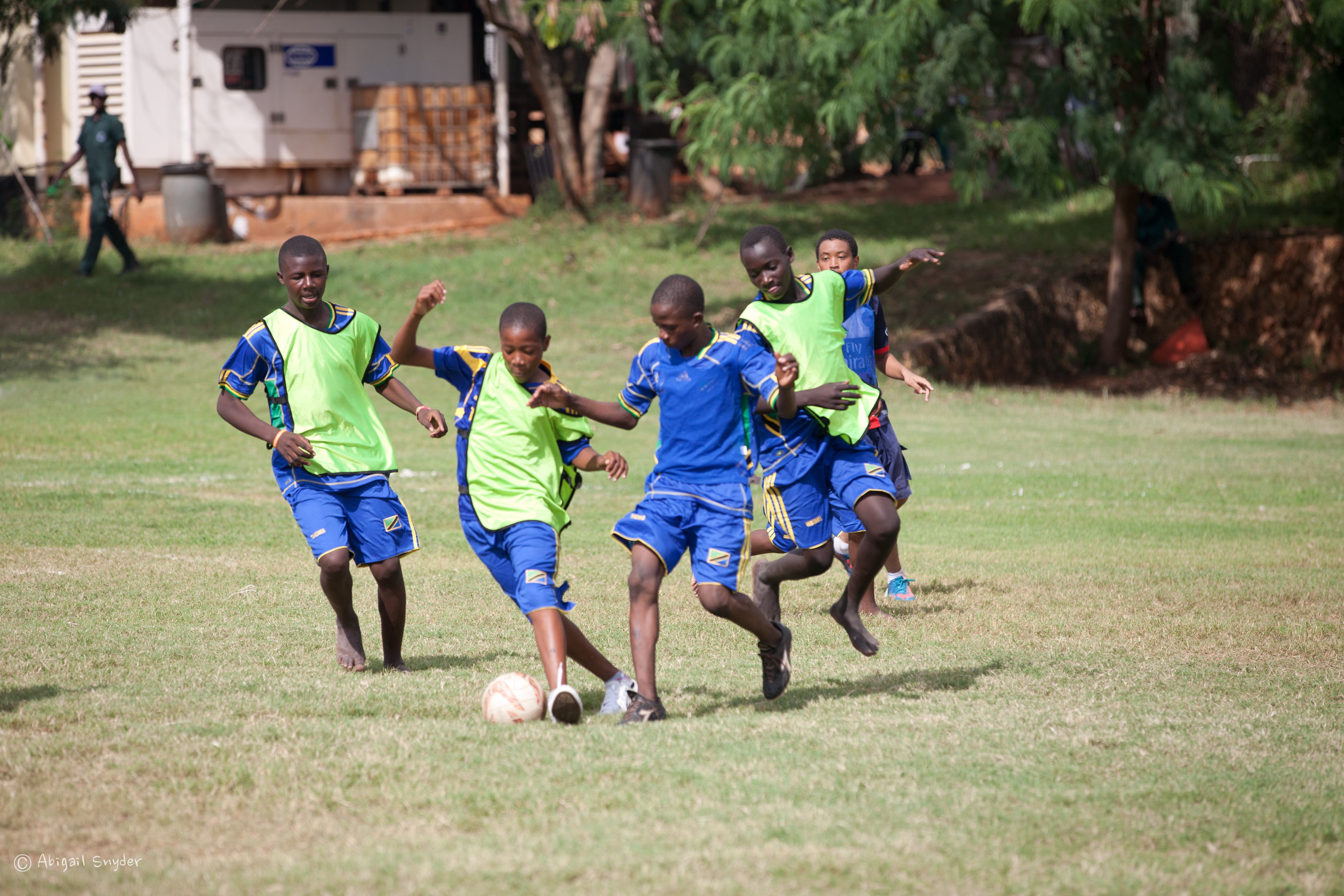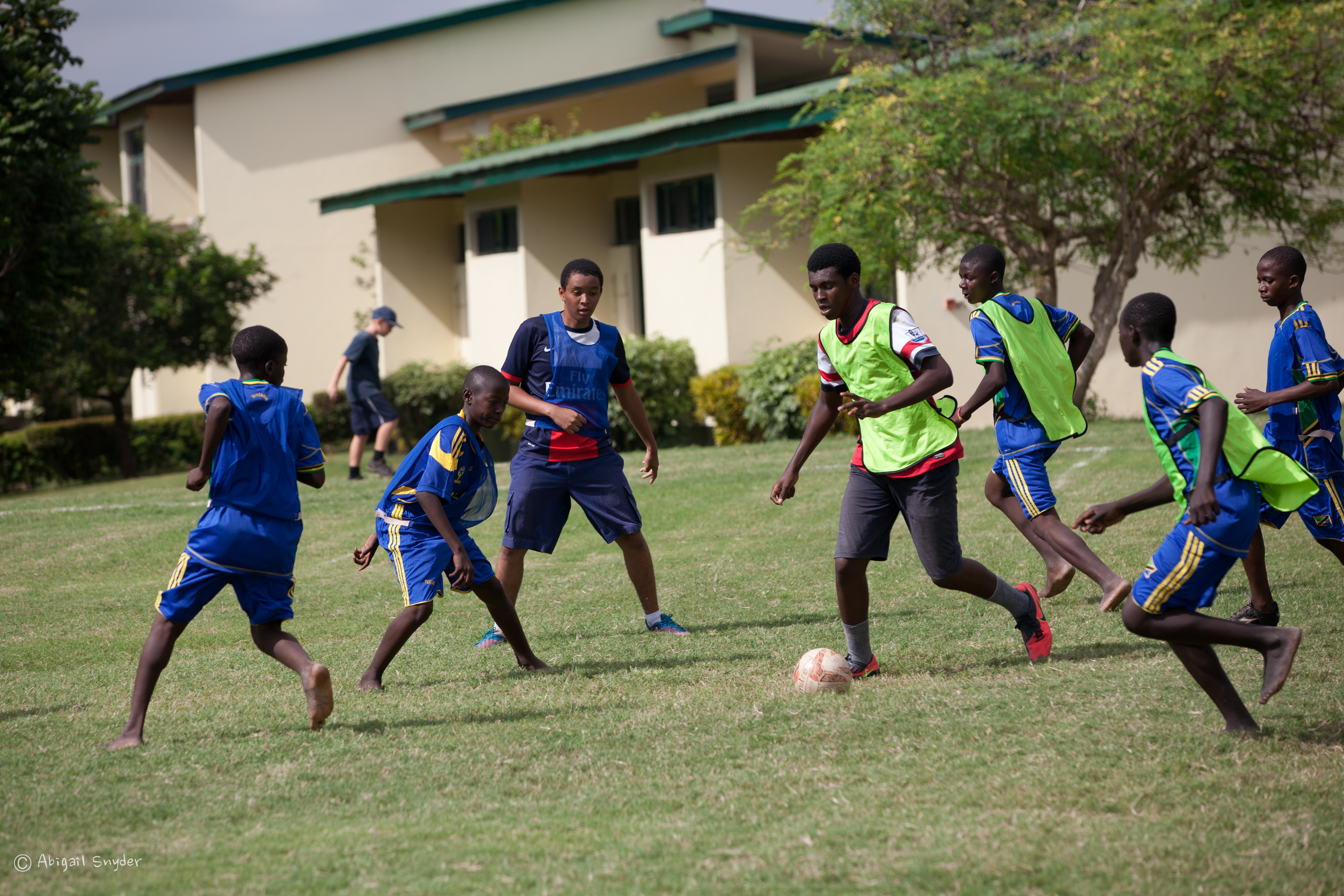 I stayed behind at HOPAC to supervise a football day. HOPAC students invited 22 street children involved with the Safina Project to HOPAC for a day of football, food, and fun. When they arrived, the boys were given brand-new football kits (jerseys and shorts), and assigned to a team with several HOPAC students for the day. Each team played five games half-pitch tournament-style, and then as a final match, the HOPAC students played verses Safina, resulting in a win 1-0 for Safina! After football, they gathered together to eat pilau, kachumbari, and mandazi (an incredible, delicious meal). HOPAC students also purchased several footballs, which they gave to Safina as a gift so that the boys would be able to play football at Safina on their own. It was so much fun to see the boys from the streets of Dar playing football side by side with some of the most privileged students in Dar — and everyone involved having a fantastic time!