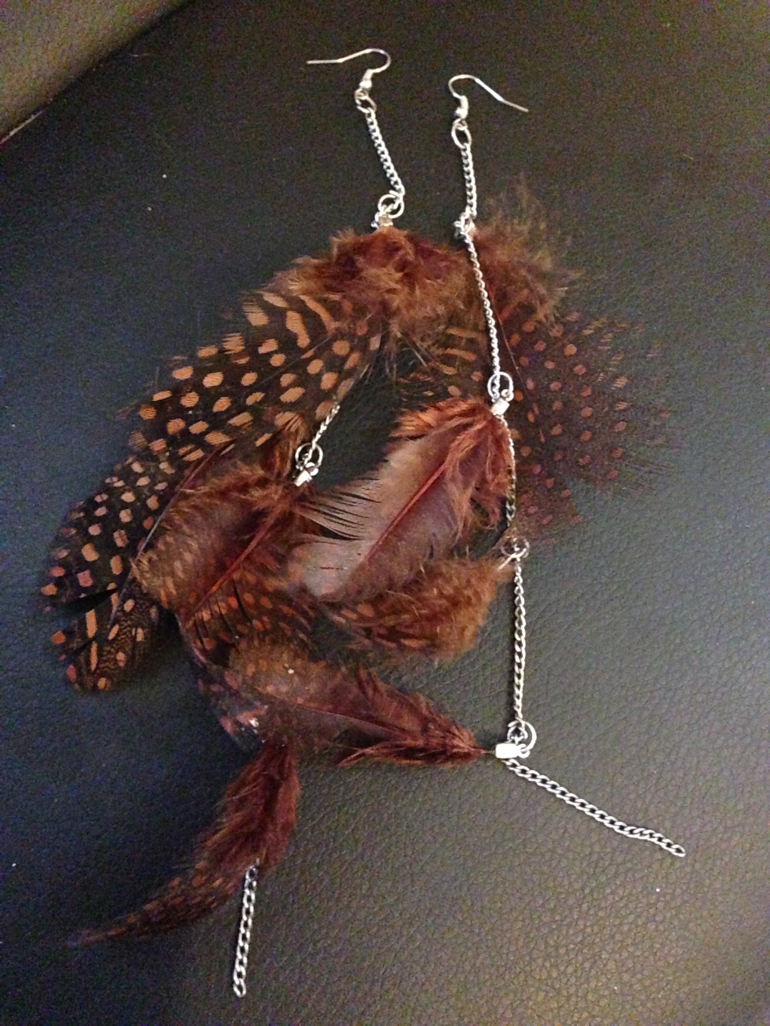 This picture makes these earrings look deceptively small. In reality, they are nearly 9 inches long! I haven’t worn them in awhile, but I’m not sure why. These used to be my go-to earrings for almost any occasion. I mean, how can you go wrong with super-long earrings and feathers???