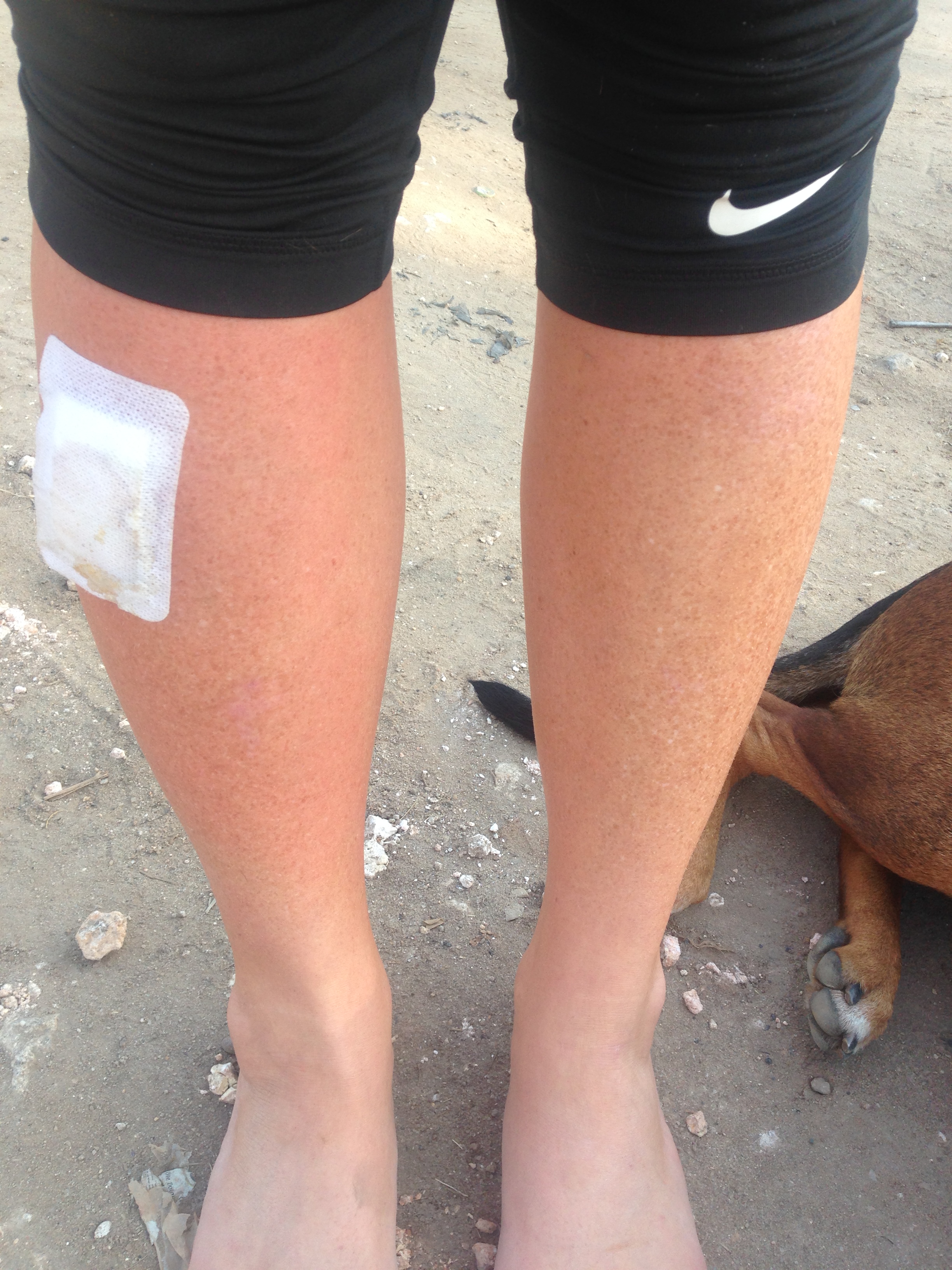 Finally, Monday morning, I saw some improvement. The swelling was reduced significantly, and with it, the pain had decreased. I kept my leg elevated most of the day at school, and then coached volleyball tentatively that evening. The wound itself didn’t look too much better, but the redness immediately around the wound had dissipated slightly even if my whole leg was still red, so there was some progress.