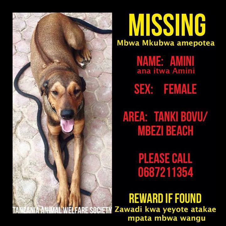 For those who aren’t in Dar es Salaam or haven’t seen the multitude of posts on Facebook, my dog Amini has been missing since Sunday morning sometime. This dog is not just a pet. She is also my “security policy” and guard dog. I and lots of other people are doing everything possible to find her, but it is likely she has been stolen. PLEASE PRAY that she is returned to me soon–even if I have to pay to get her back. I don’t know if I can do life here without her.