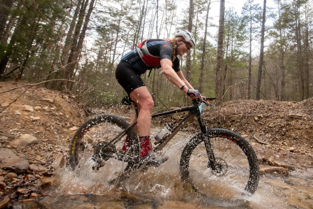 Having ridden the 60k version of the course in 2021 on my hardtail, I remembered the course as rocky, rough, and challenging…but I also knew that I’d now spent a year training in rocky conditions and was better technically prepared than I had been in 2021. Or, at least as of December 2021, I was better prepared. When I went out to do a shakeout ride the night before the race, it was only my second time on trails since the start of the year–and I felt shaky at best. Still, despite some last-minute second-guessing, I chose the hardtail again. It is a straight-cross-country hardtail, the 2020 Specialized Epic HT with a 120mm Rockshox SID fork for a bit of extra shreddy-ness. My thinking was that it was at least light and fast for the long stretches of gravel at the start and finish of the race.