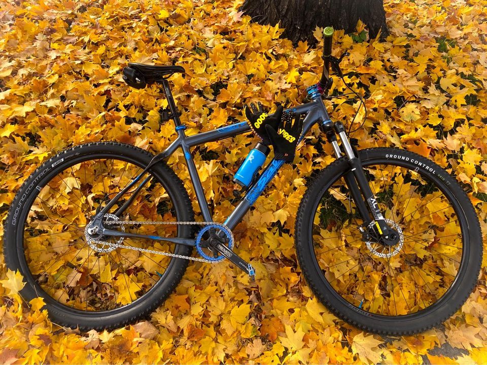 Then, last fall, I happened to see on Facebook that a friend in Indianapolis was selling his Salsa Selma, an older aluminum-carbon hardtail singlespeed. I did a bit of haggling, felt I was getting a good deal on a “cheap” singlespeed to try out the sport, and brokered the deal through my brother, who was able to bring the bike to me. Something about the blue and gray paint and the Midwest origins of the bike reminded me of Iceman Cometh, the legendary Michigan mountain bike race, and so my first singlespeed mountain bike became “Iceman.”