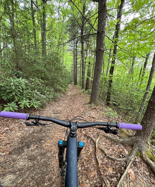 The weather has been pretty wet recently, making for some muddy rides, but still super fun! Also a great opportunity to get some practice riding in slippery conditions. The mountain-laurel is also getting so pretty here, and the trails are so green and beautiful right now! I still need to work on speed in steep terrain and tech. I’m looking forward to longer rides this summer, and doing some more gnarly tech. I need to get used to enduro/trail rides that are longer than 15 miles because my race is about 30 miles, so that is my challenge for the summer!
