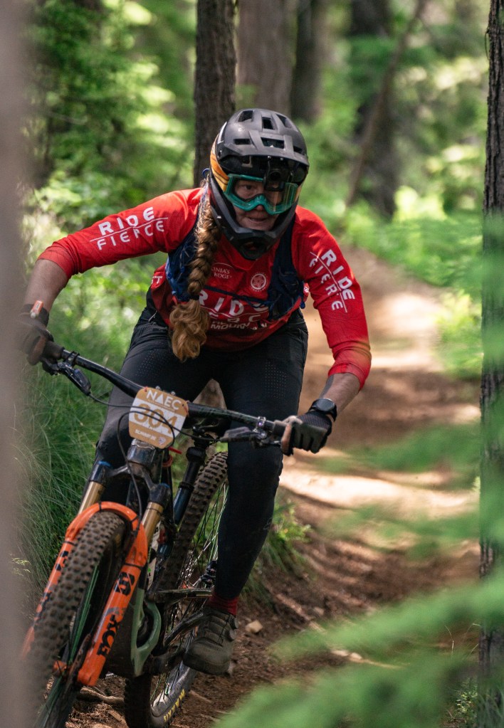 The North American Enduro Cup is a unique format among U.S. enduro races, as it is a 2-day event, with five stages the first day and two stages the second day (one of which is a top-to-bottom run that is nearly 4 miles and 3,300 feet of descending). Taking place at Silver Mountain Resort in Kellogg, Idaho, the stages are comprised of a mixture of fresh-cut “loamers” and park trails, giving riders a full-spectrum experience of flow, tech, berms, switchbacks, drops, rock gardens, rock rolls, and jumps. Because the non-park trails are only open for pre-riding on the Friday just before the race and the course isn’t released until Thursday at 8 p.m., riders must pre-ride everything on Friday, which makes for a big day on the bike to start off the weekend of racing. Spoiler alert: I LOVED the physicality and expansiveness of the two-day format!