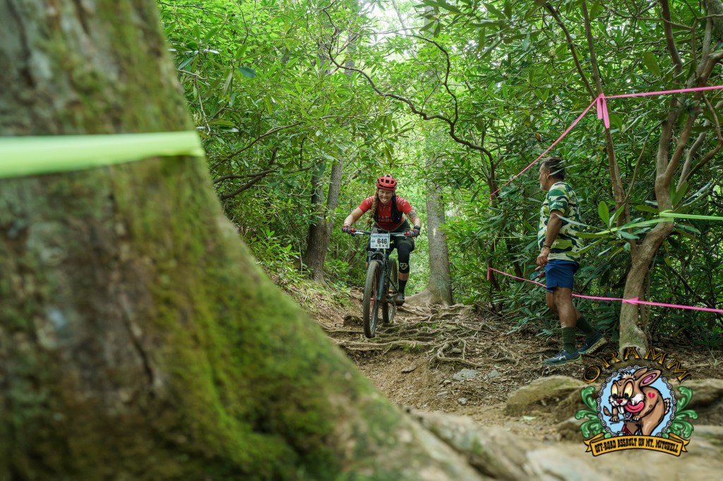 Due to the lasting damage caused by Hurricane Helene, the ORAMM course was altered this year so that it included the Bernard Mountain Trail and Kitsuma twice, as well as many of the new G5 Collective / Gateway trails. By my rough estimate, there was significantly more singletrack this year in comparison to prior years, which I’m not complaining about. I feel most at home racing on singletrack, even when it’s uphill (though I did manage to step off the trail when attempting to dismount before a particularly challenging uphill switchback, which landed me upside down in some bushes and a bee’s nest–OOPS!).