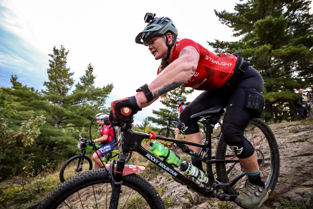 My little off-course adventure did, however, contribute to me miscalculating my water supply, and then riding a solid 30-45 minutes without water. When I did finally see some people waiting to support their riders and asked desperately if anyone had water, it was a godsend. Shout out to all of the many people who were providing support along the course–and especially to Clare (who I met the day before the race, but when she saw me, asked if I needed anything, and I asked if she had a Red Bull, literally gave me the second half of her own Red Bull). I was a bit shocked throughout the day to hear people along the course shouting my name and cheering for me, as I really didn’t expect to know anyone all the way up in the UP of Michigan–what a fun surprise to see so many people that I knew!
