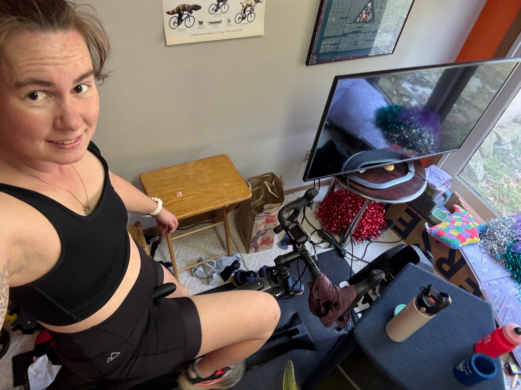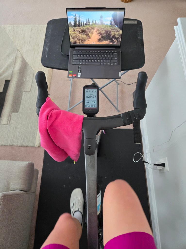 It’s definitely been a weird mental shift for me to do so much indoor training, but it’s meant I’ve ridden my bike a lot more than in the winters past. I’ve actually grown to love how little preparation time there is for indoor riding vs outdoor riding. I just put on my bib shorts, socks, shoes, and a sports bra, then make sure I’ve got enough water and I’m all set for training. I’m also learning so much from the structured training, ESPECIALLY with cadence work. I’ve always had a slower cadence and never really done much work with it (except for when I was in spin class way back in the day), but it’s brought more awareness to my movement and it’s a challenge to try and remain smooth while also ramping up the speed of my legs.