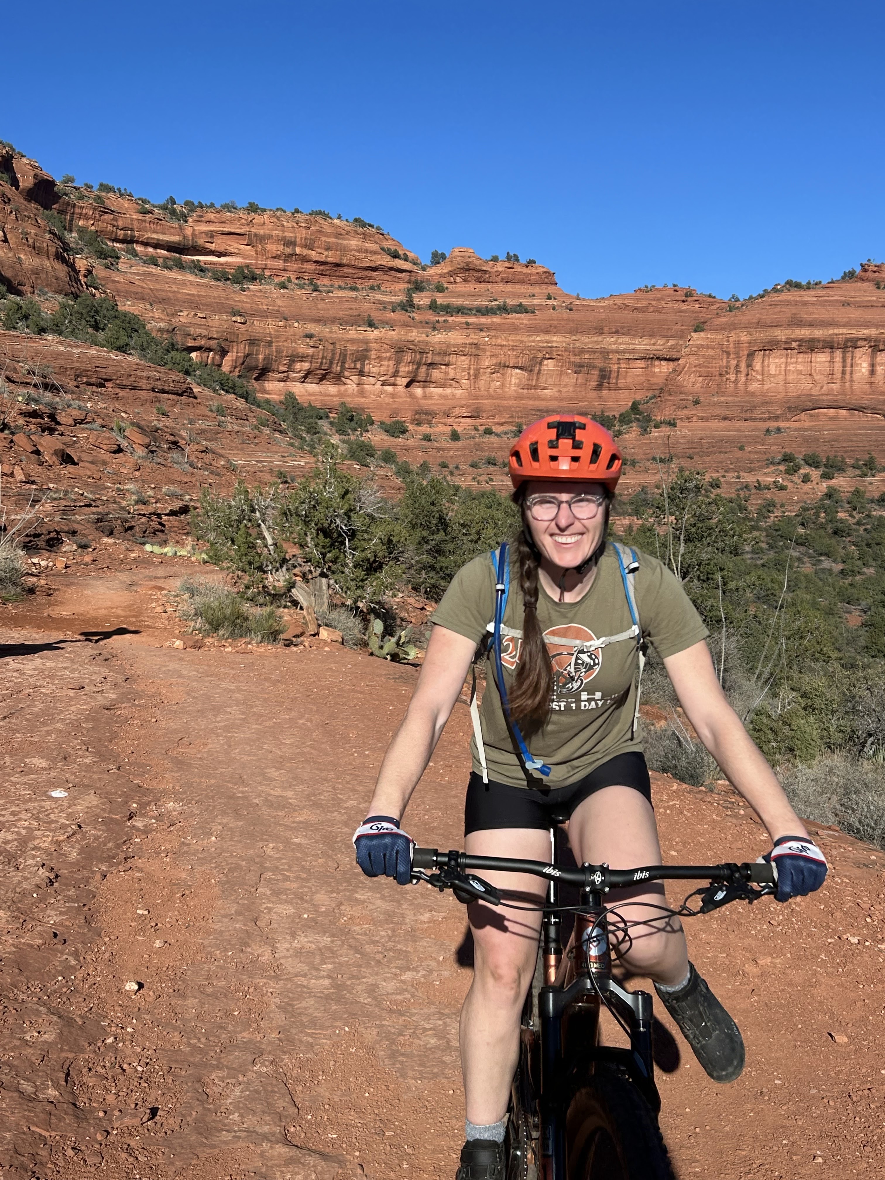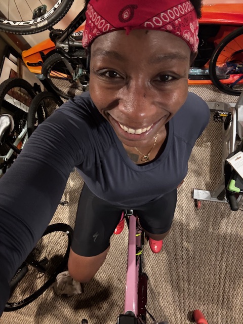 Winter training has definitely challenged my consistency but it’s pushed me to build discipline and give myself grace when needed. With the support of a structured training schedule and my sport psychology course, I’ve been able to create more routine within the chaos and stay intentional about my preparation. Learning on the go and prioritizing indoor and outdoor workouts. When I don’t have access to my bike due to travel for work, I’ve utilized indoor trainers, and also maintain endurance and building strength through activities such as snowboarding, trail running, hiking, climbing and lots of yoga sessions.